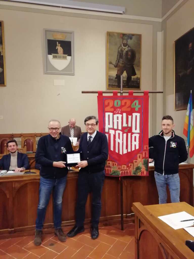 Serata di riconoscimenti a Palazzo delle Laudi a Sansepolcro Prima della seduta del consiglio comunale, l’amministrazione biturgense ha voluto insignire realtà associazionistiche e sportive locali per i grandi traguardi centrati nel 2024. Il sindaco Fabrizio Innocenti ha consegnato una targa alla Società Balestrieri, risultata vincitrice del contest Rai “Palio d’Italia”, che ha decretato il Palio della Balestra come evento principe sull’intero territorio nazionale. Una targa è stata poi consegnata dallo stesso sindaco ad Alessandro Riguccini, pugile di chiara fama e indiscusso campione mondiale nella disciplina del Kickboxing.