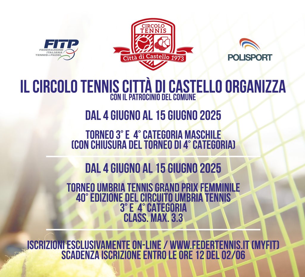I campi del circolo tennis di Città di Castello ospiteranno il torneo terza e quarta categoria maschile e femminile! La presidente Gioia Calagreti e tutto il consiglio direttivo stanno definendo i dettagli organizzativi di un evento simbolo della stagione sportiva.
