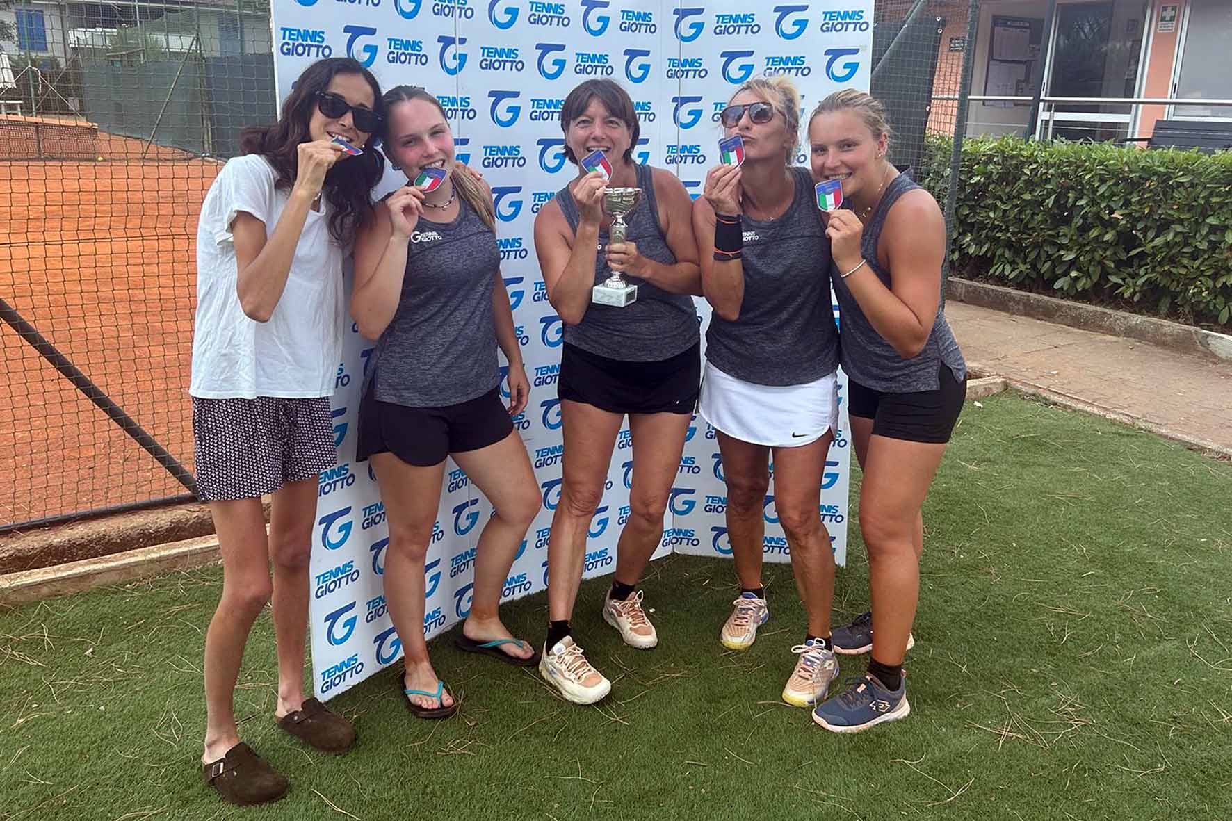 Terzo titolo regionale in tre settimane per le squadre del Tennis Giotto Arezzo. I successi giovanili nelle categorie Under16 e Under18 hanno trovato seguito con una vittoria a livello senior firmata dalla formazione femminile di D3 che è riuscita a perseguire il triplice obiettivo di chiudere la stagione da imbattuta, di festeggiare la promozione in D2 e di conquistare lo scudetto toscano. La conclusione della stagione a squadre sarà ora seguita, come tradizione, dalla maratona tra sport, aggregazione e solidarietà della “24ore” in programma tra oggi venerdì 11 e domani sabato 12 luglio.