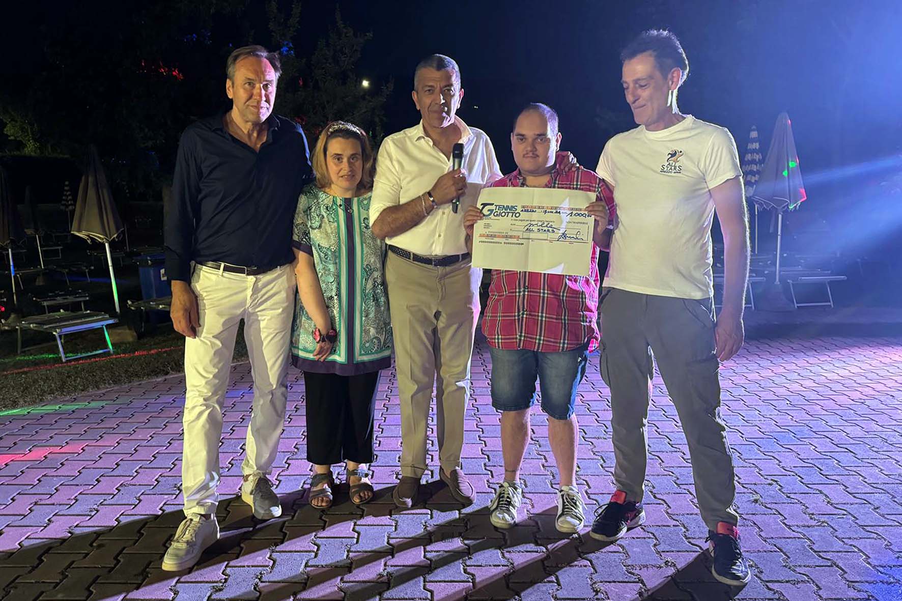 Sport e solidarietà sono tornati a unirsi nella “24ore” del Tennis Giotto Arezzo. Il circolo aretino ha ospitato due giornate ricche di tornei, giochi e iniziative che hanno coinvolto decine di soci e che, come tradizione, hanno trovato l’epilogo nella donazione dell’intero ricavato della manifestazione in sostegno alle attività di All Stars Arezzo Onlus. Nel corso della “24ore” è stata infatti condotta una raccolta di fondi che, tra quote di iscrizione e libere offerte, ha permesso di consegnare un assegno del valore di mille euro all’associazione che utilizza l’attività sportiva per promuovere occasioni di valorizzazione, autonomia, inclusione e integrazione per persone con disabilità fisiche e intellettive.