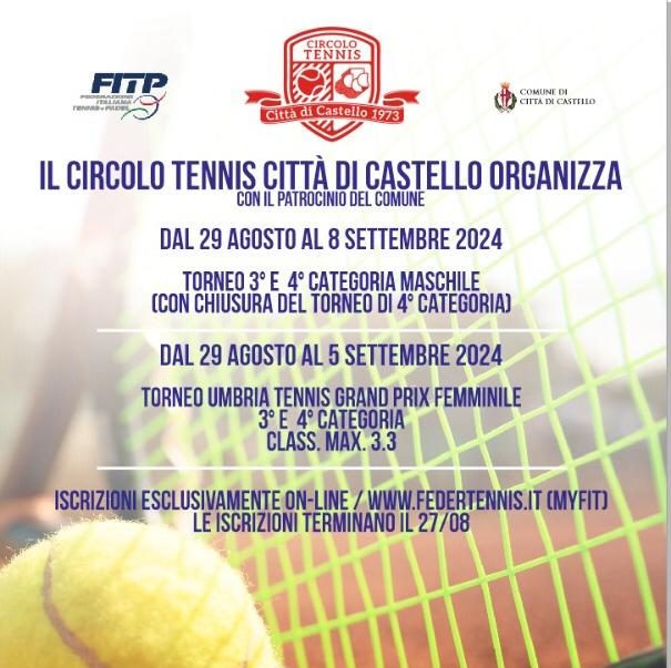Anche nell’estate 2024 il Circolo Tennis Citta’di Castello organizza con grande entusiasmo la 39^ edizione del torneo di tennis nazionale Fitp sia maschile che femminile di terza categoria!